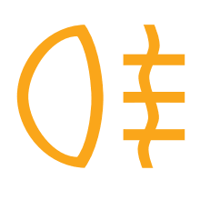 This symbol illuminates in orange when the rear fog lights have been switched on. Turn the ring on the stalk rearwards to switch off the rear fog lights.